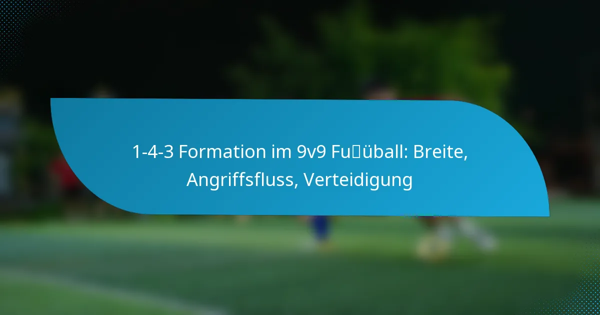 Die 1-4-3-Formation im 9v9-Fußball ist ein taktisches Setup, das einen ausgewogenen Ansatz zwischen Verteidigung und Angriff betont. Durch die Positionierung eines Torwarts, vier Verteidigern, drei Mittelfeldspielern und einem Stürmer verbessert diese Formation die Breite und erleichtert flüssige Angriffsbewegungen, sodass die Teams den Gegner dehnen und Raum für effektive Spielzüge schaffen können.